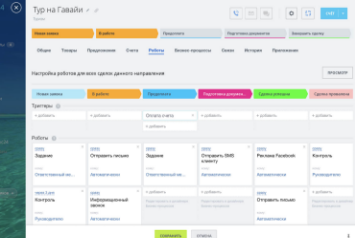 Постановить задачу, запланировать звонок или встречу, сменить ответственного или стадию сделки, отправить письмо или SMS, напомнить ответственному — это лишь часть того, что вы можете настроить с помощью роботов и триггеров в CRM и Задачах.